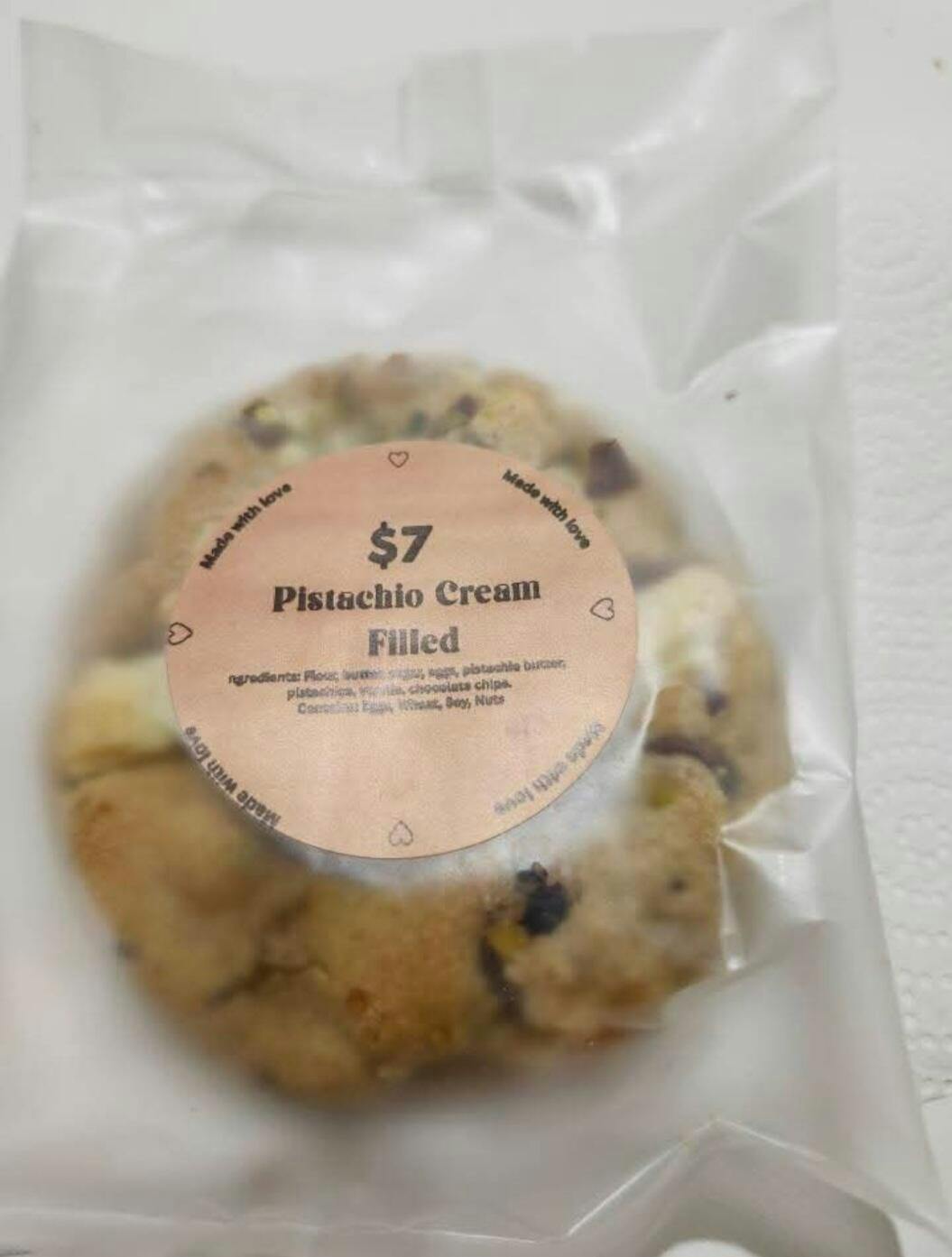 A cookie with a surprise inside. Our Pistachio Cream Filled Cookie is soft, chewy, and loaded with real pistachios, then filled with a smooth pistachio cream that adds a rich, nutty finish to every bite. It’s a perfect balance of texture and flavor, making it a standout for pistachio lovers and cookie fans alike.